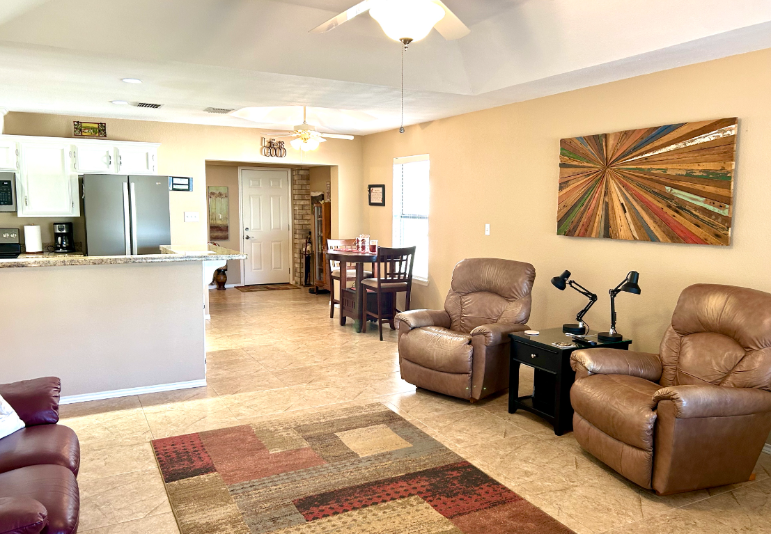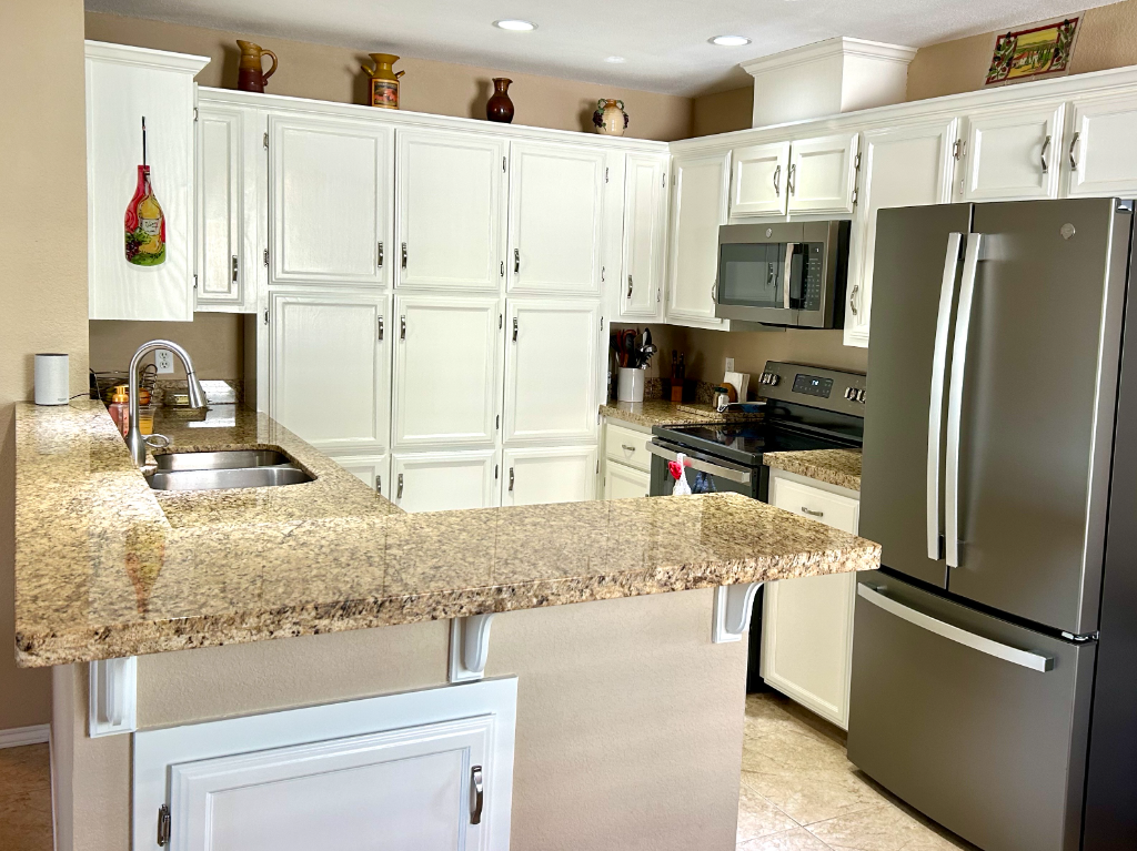 Major renovation in 2016 include: new tile floor throughout the entire house, popcorn ceiling removed, sliding glass door removed and bonus room floor raised, new tiled showers, new 6-panel interior doors and hardware, new granite countertops in kitchen & bathrooms, new faucets and sinks, replaced kitchen fluorescent lights with can lights. New light fixtures throughout. New 2” Levolor blinds on all windows. New hardware in kitchen and bathrooms. Primary bedroom has walk-in closet and en suite bathroom with space saving pocket door. Enjoy the bonus room with windows for lots of light – can be used for office, tv room, etc.